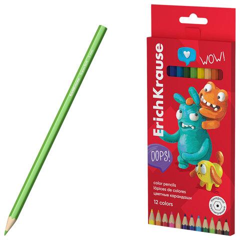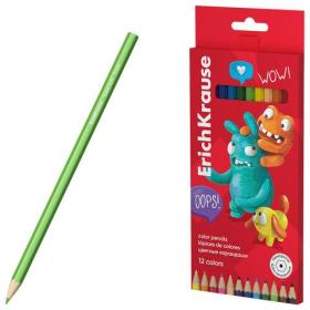 Цветные карандаши ERICH KRAUSE "Jolly Friends", 12 цветов, шестигранные, натуральное дерево, 61792