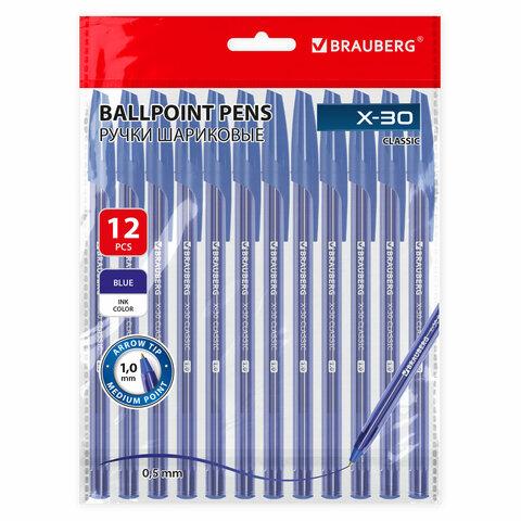 Ручки шариковые BRAUBERG X-30 CLASSIC, КОМПЛЕКТ 12 ШТ., СИНИЕ, пишущий узел 1 мм, линия письма 0,5 мм, 144332