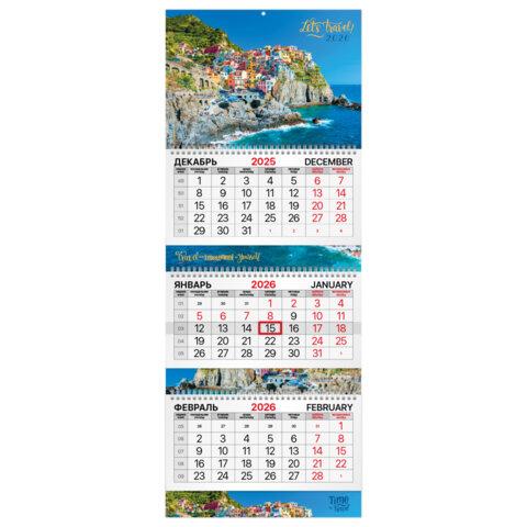 Календарь квартальный 2026 г., 3 блока, 3 гребня, бегунок, мелованная бумага, BRAUBERG EXTRA, "Бухта", 116818