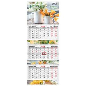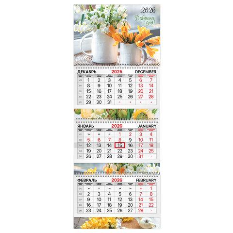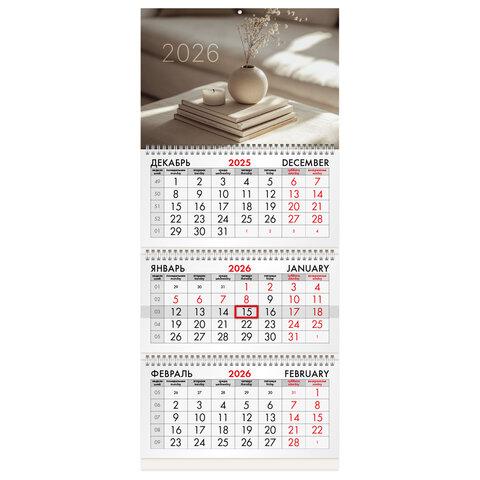 Календарь квартальный на 2026 г., 3 блока, 3 гребня, бегунок, мелованная бумага, BRAUBERG, "Уют", 116804