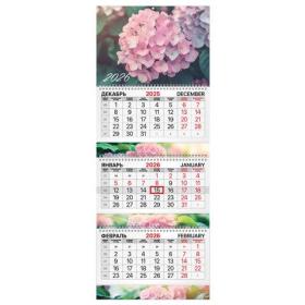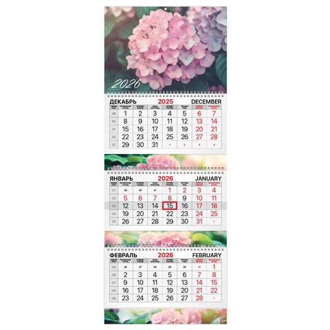 Календарь квартальный 2026 г., 3 блока, 3 гребня, бегунок, мелованная бумага, BRAUBERG EXTRA, "Гортензия", 116826