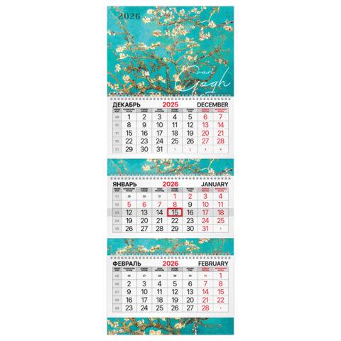 Календарь квартальный 2026 г., 3 блока, 3 гребня, бегунок, мелованная бумага, BRAUBERG EXTRA, "Маяк", 116819