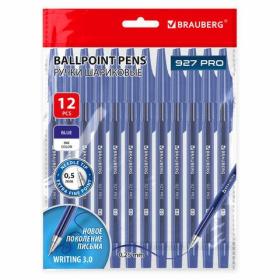 Ручки шариковые BRAUBERG 927 PRO "WRITING 3.0", КОМПЛЕКТ 12 ШТ., СИНИЕ, пишущий узел 0,5 мм, линия письма 0,25 мм, 144338
