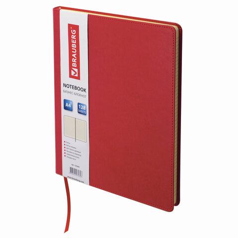 Блокнот БОЛЬШОЙ ФОРМАТ (200х252 мм) В5, BRAUBERG "Income", кожзам, 128 л., клетка, красный, 125205