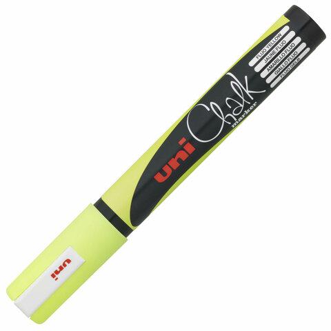 Маркер меловой UNI PWE-5M, флуоресцентно-жёлтый, 1.8-2.5 мм.