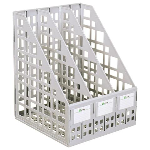 Лоток вертикальный для бумаг (250х245х295 мм), 3 отделения, сетчатый, сборный, серый, ЛТВ-63719