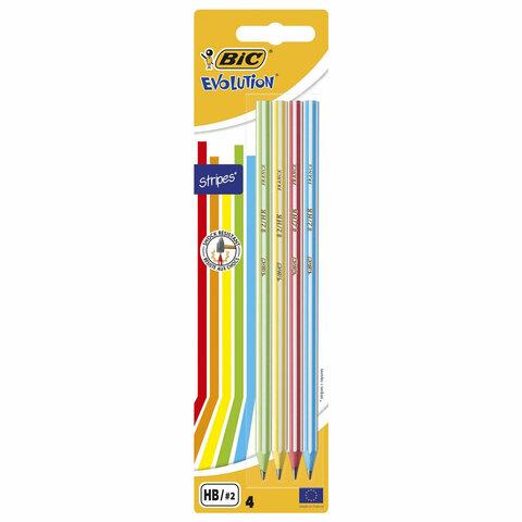 Карандаши чернографитные BIC Evolution "Stripes", НАБОР 4 шт., HB, пластиковые, блистер, 918485