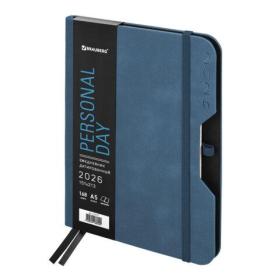 Ежедневник датированный 2026, А5, 151х213 мм, BRAUBERG "Note", под кожу, держатель для ручки, синий, 117517