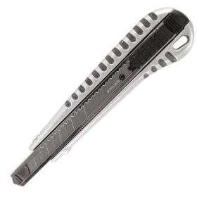 Нож универсальный 9 мм BRAUBERG "Metallic", металлический корпус (рифленый), автофиксатор, блистер, 236971