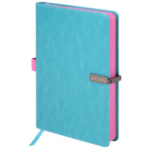Ежедневник датированный 2026, А5, 138x213 мм, BRAUBERG "Pastel", под кожу гибкий, бирюзовый, 117462