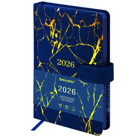 Ежедневник датированный 2026, А5, 138х213 мм, BRAUBERG "Swirl", под кожу, держатель для ручки, синий, 117479
