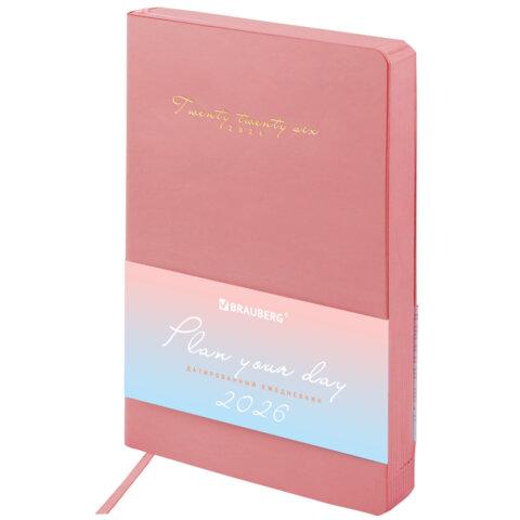 Ежедневник датированный 2026, А5, 138x213 мм, BRAUBERG "Pastel", под кожу гибкий, розовый, 117463