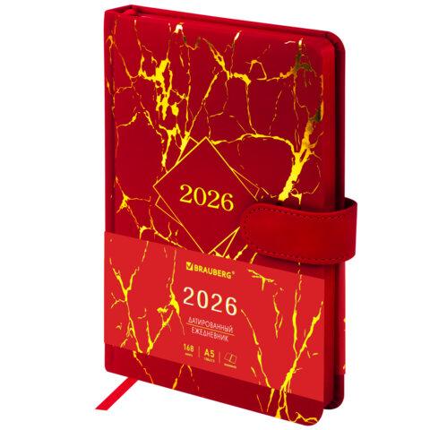 Ежедневник датированный 2026, А5, 138х213 мм, BRAUBERG "Swirl", под кожу, держатель для ручки, красный, 117481