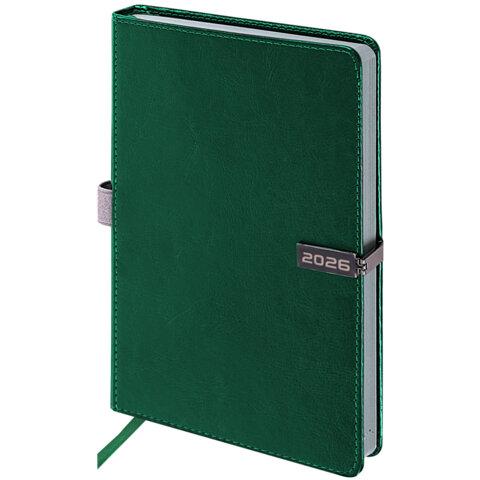 Ежедневник датированный 2026 А5 138x213 мм, BRAUBERG "Inspiration", под кожу, цветной срез, темно-зеленый, 117477