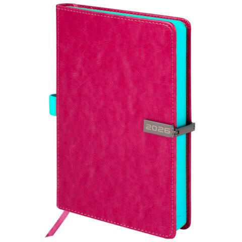 Ежедневник датированный 2026 А5 138x213 мм, BRAUBERG "Inspiration", под кожу, цветной срез, розовый, 117478