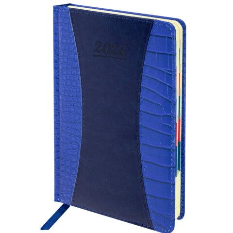Ежедневник датированный 2026 А5 138x213 мм, BRAUBERG "Inspiration", под кожу, цветной срез, синий, 117474