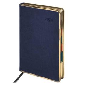 Ежедневник датированный 2026 А5 138x213 мм, BRAUBERG "Goldy", под кожу, цветной срез, синий, 117472