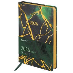Ежедневник датированный 2026 А5 138x213 мм, BRAUBERG "Vista", под кожу, твердый, "Green marble", 117456