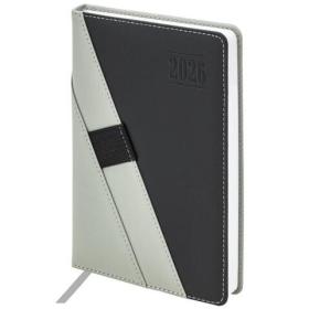Ежедневник датированный 2026, А5, 138х213 мм, BRAUBERG "Swirl", под кожу, держатель для ручки, серый, 117482