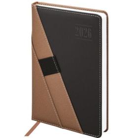 Ежедневник датированный 2026, А5, 138х213 мм, BRAUBERG "Swirl", под кожу, держатель для ручки, коричневый, 117480
