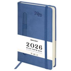 Ежедневник датированный 2026, А5, 138x213 мм, BRAUBERG "Pastel", под кожу гибкий, синий, 117461