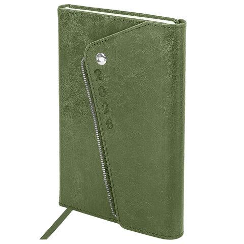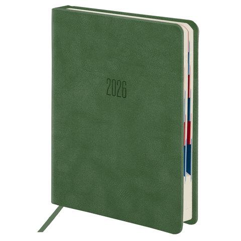 Ежедневник датированный 2026, А5, 145х213 мм, BRAUBERG "Jacket", под кожу, клапан, держатель, зеленый, 117402