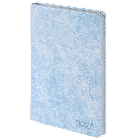 Ежедневник датированный 2026, А5, 138х213 мм, BRAUBERG "Ice", под кожу, голубой, 117389