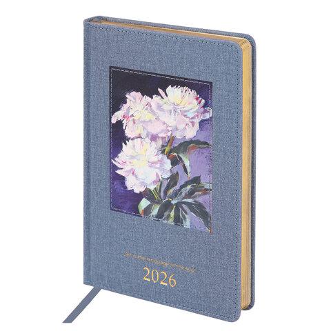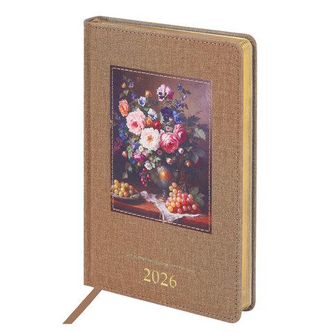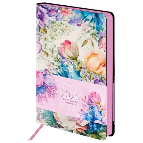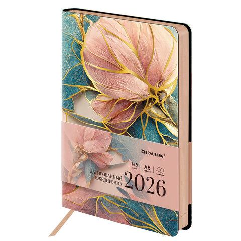 Ежедневник датированный 2026 А5 138x213 мм, BRAUBERG "Vista", под кожу, твердый, "Flowers", 117454