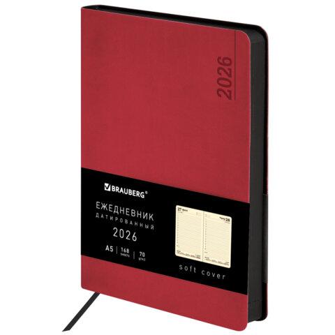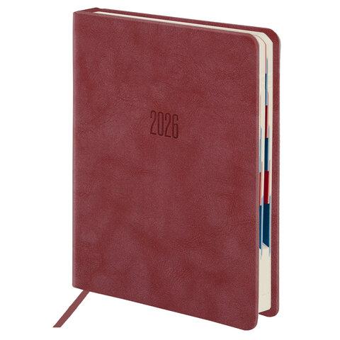 Ежедневник датированный 2026 А5 138x213 мм, BRAUBERG "Vista", под кожу, гибкий, "Pomegranate", 117449