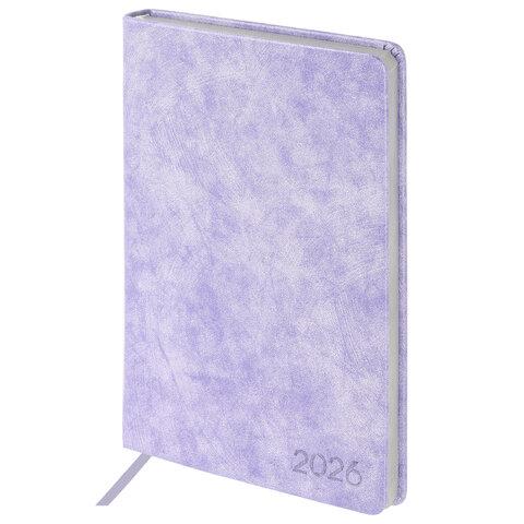 Ежедневник датированный 2026 А5 138х213 мм, BRAUBERG "Ice", под кожу, сиреневый, 117392