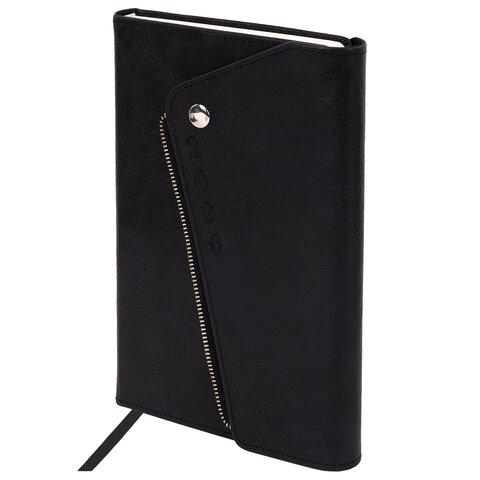 Ежедневник датированный 2026, А5, 145х213 мм, BRAUBERG "Jacket", под кожу, клапан, держатель, черный, 117399