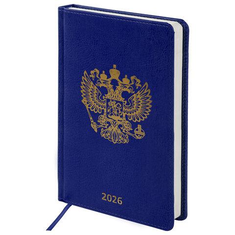 Ежедневник датированный 2026 А5 138х213 мм, BRAUBERG "State", под кожу, синий, 117416
