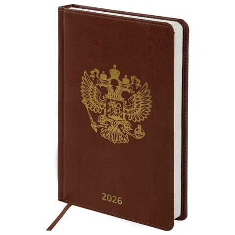 Ежедневник датированный 2026 А5 138х213 мм, BRAUBERG "State", под кожу, коричневый, 117417