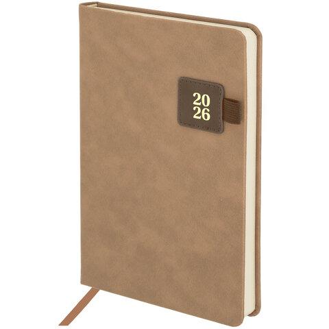 Ежедневник датированный 2026, А5, 138х213 мм, BRAUBERG "Essential", под кожу, держатель, бежевый, 117396