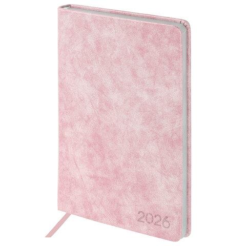 Ежедневник датированный 2026 А5 138x213 мм, BRAUBERG "Vista", под кожу, гибкий, "Pink marble", 117446
