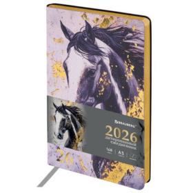 Ежедневник датированный 2026 А5 138x213 мм, BRAUBERG "Vista", под кожу, гибкий, "Majestic horse", 117448