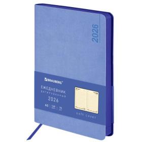 Ежедневник датированный 2026 А5 138x213 мм, BRAUBERG "Metropolis Mix", под кожу, гибкий, голубой, 117444