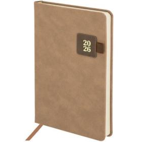 Ежедневник датированный 2026 А5 138х213 мм, BRAUBERG "ArtGallery", под кожу, нашивка, бежевый, 117404