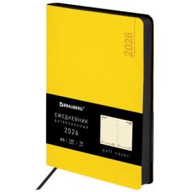 Ежедневник датированный 2026 А5 138x213 мм, BRAUBERG "Metropolis Mix", под кожу, гибкий, желтый, 117441