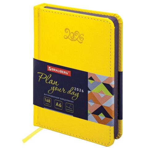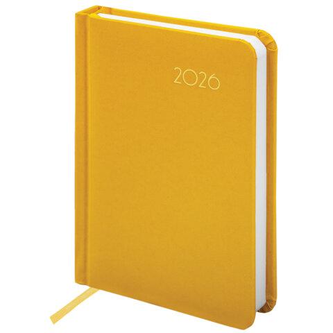Ежедневник датированный 2026, МАЛЫЙ ФОРМАТ 100х150 мм, А6, BRAUBERG "Select", балакрон, желтый, 117261