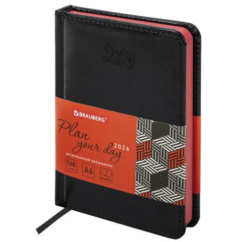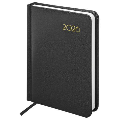 Ежедневник датированный 2026, МАЛЫЙ ФОРМАТ 100х150 мм, А6, BRAUBERG "Select", балакрон, черный, 117260