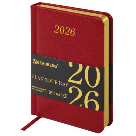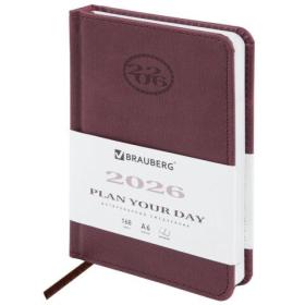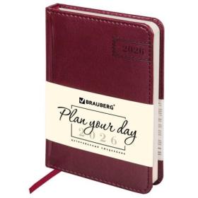 Ежедневник датированный 2026, МАЛЫЙ ФОРМАТ 100х150 мм, А6, BRAUBERG "Imperial", под кожу, бордо, 117254