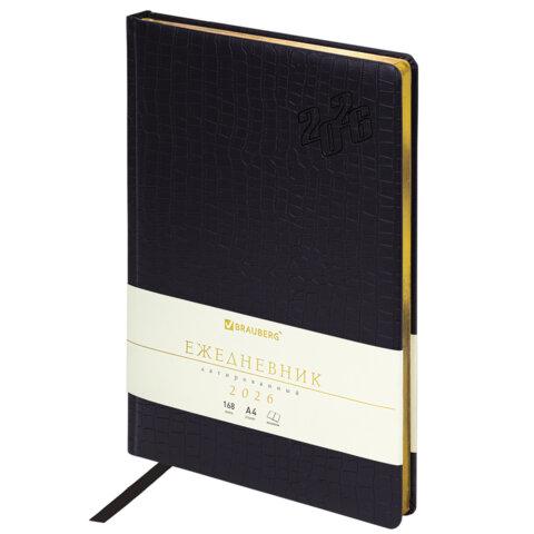 Ежедневник датированный 2026 БОЛЬШОЙ ФОРМАТ 210х297мм А4, BRAUBERG Comodo, под кожу, черный, 117242