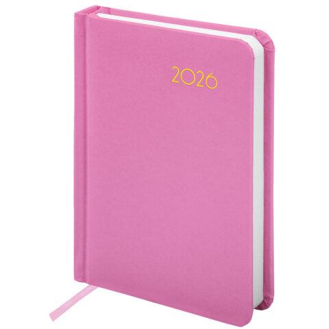 Ежедневник датированный 2026, МАЛЫЙ ФОРМАТ 100х150 мм, А6, BRAUBERG "Select", балакрон, розовый, 117262