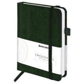 Ежедневник датированный 2026 МАЛЫЙ ФОРМАТ 100х150 мм, А6, BRAUBERG "Wood", под кожу, темно-зеленый, 117266