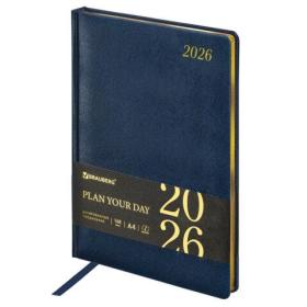Ежедневник датированный 2026 БОЛЬШОЙ ФОРМАТ 210х297 мм, А4, BRAUBERG "Imperial", под кожу, синий, 117247