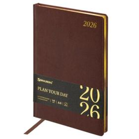 Ежедневник датированный 2026 БОЛЬШОЙ ФОРМАТ 210х297 мм, А4, BRAUBERG "Iguana", под кожу, коричневый, 117244