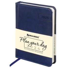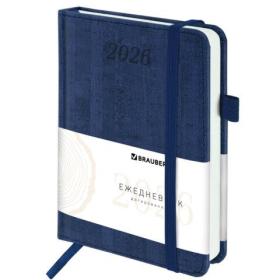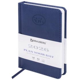Ежедневник датированный 2026, МАЛЫЙ ФОРМАТ 100х150 мм, А6, BRAUBERG "Select", балакрон, темно-синий, 117259
