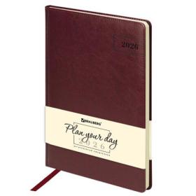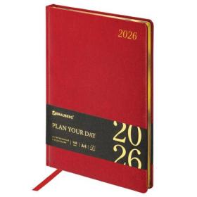 Ежедневник датированный 2026 БОЛЬШОЙ ФОРМАТ 210х297 мм, А4, BRAUBERG "Imperial", под кожу, бордо, 117248