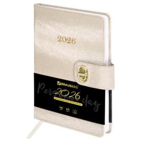 Ежедневник датированный 2026 А5 138х213 мм, BRAUBERG "Elegant", под кожу, застежка, бежевый, 117369